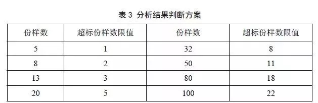 7.1在對固體廢物樣品進(jìn)行檢測后,如果檢測結(jié)果超過GB5085.1、GB5085.3、GB5085.4、GB5085.5和GB5085.6中相應(yīng)標(biāo)準(zhǔn)限值的份樣數(shù)大于或者等于表3中的超標(biāo)份樣數(shù)限值,即可判定該固體廢物具有該種危險特性。