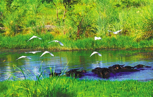 宜昌黃柏河流域生態(tài)補(bǔ)償機(jī)制成效初顯,黃柏河呈現(xiàn)出岸綠水清、白鷺翩飛的宜人景象。 望作信攝