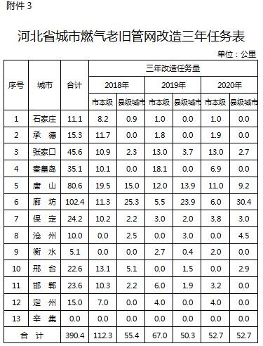 3.河北省城市燃氣老舊管網(wǎng)改造三年任務表