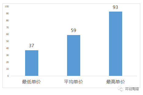 已開標的46個項目中,最低中標單價為37元/噸,最高中標單價為93元/噸,平均中標單價為59元/噸。