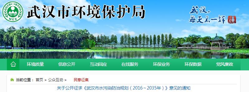 關于公開征求《武漢市水污染防治規(guī)劃(2016~2035年)》意見的通知
