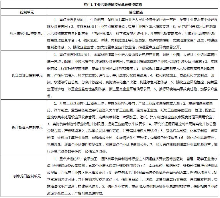 推進工業(yè)企業(yè)入園管理。完善工業(yè)集聚區(qū)污水收集處理設施和在線監(jiān)控設施。針對長江、漢江、府河等重點流域排放廢水的工業(yè)企業(yè),制定并執(zhí)行污染物特別排放限值,出水接入城鎮(zhèn)污水管網(wǎng)的應達到《污水綜合排放標準》一級B要求,直接排入水環(huán)境的工業(yè)園區(qū)應加強中水回用,廢水排放執(zhí)行《城鎮(zhèn)污水處理廠污染物排放標準》表1中一級A排放標準。