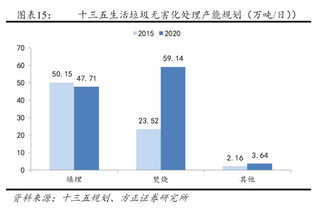 細(xì)分來看,無害化處置中填埋、焚燒、其他方式年處置量分別為1.68億噸、0.80億噸、0.06億噸,占比分別為66%、31%和2%,衛(wèi)生填埋仍然是無害化處置的主流方式。