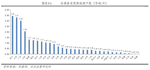 從垃圾焚燒產(chǎn)能角度看,浙江、江蘇、廣東三省垃圾焚燒產(chǎn)能超過3萬噸/日,甘肅、貴州、內(nèi)蒙古、遼寧、陜西、寧夏、新疆、江西8省垃圾焚燒產(chǎn)能不足3000噸/日,而青海和西藏更是尚無垃圾焚燒項(xiàng)目。