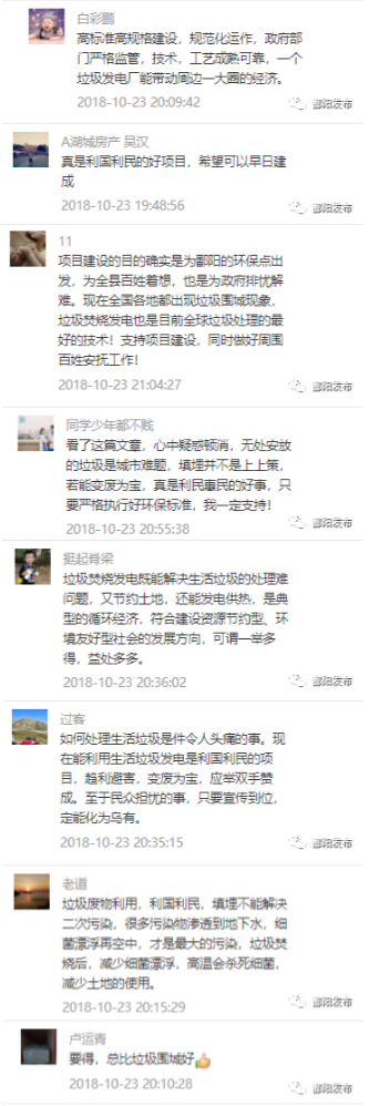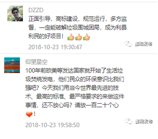 短時(shí)間內(nèi),《哦!生活垃圾焚燒發(fā)電原來(lái)是這么回事!》一文閱讀量突破三萬(wàn),可見(jiàn)鄱陽(yáng)縣社會(huì)各界對(duì)該項(xiàng)目的廣泛關(guān)注。網(wǎng)友的留言中有90%對(duì)鄱陽(yáng)縣建造生活垃圾焚燒發(fā)電廠表示認(rèn)可、鼓勵(lì)。