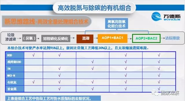 南京萬德斯環(huán)??萍脊煞萦邢薰旧虾7止究偨?jīng)理陳建湧介紹,在滲瀝液脫碳技術(shù)上,萬德斯環(huán)保采用“厭氧+高效生化+納濾+臭氧高級(jí)氧化AOP(Advanced Oxidation Process)” 為主的工藝,在高效脫氮中,利用短程硝化技術(shù),節(jié)省供氧量25%、節(jié)省反硝化碳源40%、減少污泥生成量50%、減少投堿量、縮短反應(yīng)時(shí)間。在滲瀝液高效全量處理中,組合利用 “厭氧+短程硝化反硝化+臭氧高級(jí)氧化(混凝+AOP1+BAC1+AOP2+BAC2)”技術(shù),能使產(chǎn)水率達(dá)到95%以上,且無濃縮液遺留難題。除技術(shù)創(chuàng)新外,陳建湧總經(jīng)理認(rèn)為,提倡垃圾干濕分類,采取各種有效措施減少各種好水分包括雨水進(jìn)入垃圾,以及垃圾堆場等,對(duì)降低滲瀝液處理成本具有非常重要的意義。