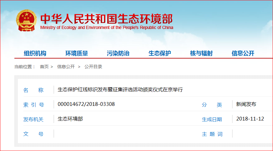 11月12日,生態(tài)環(huán)境部、自然資源部在北京聯(lián)合舉辦生態(tài)保護紅線標(biāo)識發(fā)布暨征集評選活動頒獎儀式,生態(tài)環(huán)境部有關(guān)負(fù)責(zé)同志為標(biāo)識揭幕并致辭。