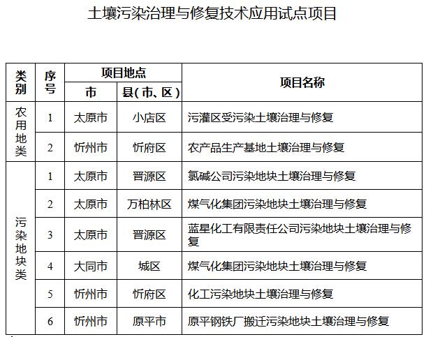 20.推進土壤污染治理與修復(fù)項目庫建設(shè),強化土壤污染防治項目儲備。進一步抓好土壤污染治理與修復(fù)技術(shù)應(yīng)用試點工作,2017年重點實施2個農(nóng)用地類和6個污染地塊類土壤污染治理與修復(fù)技術(shù)應(yīng)用試點項目(見附件),按照國家規(guī)定時限要求完成。以城市周邊污灌區(qū)、受污染耕地集中區(qū)域為重點,各市要啟動一批受污染耕地治理與修復(fù)項目,全省共啟動3000畝受污染耕地治理與修復(fù)。(省環(huán)保廳、省農(nóng)業(yè)廳、省國土資源廳牽頭,各市人民政府負責落實)