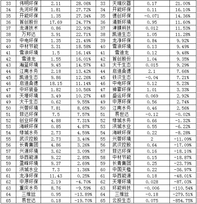 在D榜上,博天環(huán)境凈利潤(rùn)同比增長(zhǎng)以1485.45%領(lǐng)跑其他企業(yè),著實(shí)讓人驚訝。其次為剛剛上市且在股市表現(xiàn)優(yōu)異的中持股份,凈利潤(rùn)同比增長(zhǎng)744.87%。碧水源則以554.33%屈居其后,剛好與B榜一樣。而云投生態(tài)居然以同比下降854.75%超過(guò)三維絲同比下降279.51%成為末位,云投生態(tài)解釋道一季度內(nèi)支付對(duì)遂寧仁里古鎮(zhèn)文化旅游開發(fā)有限公司認(rèn)股投資款所致,因此內(nèi)斗才是公司最大的弊端。