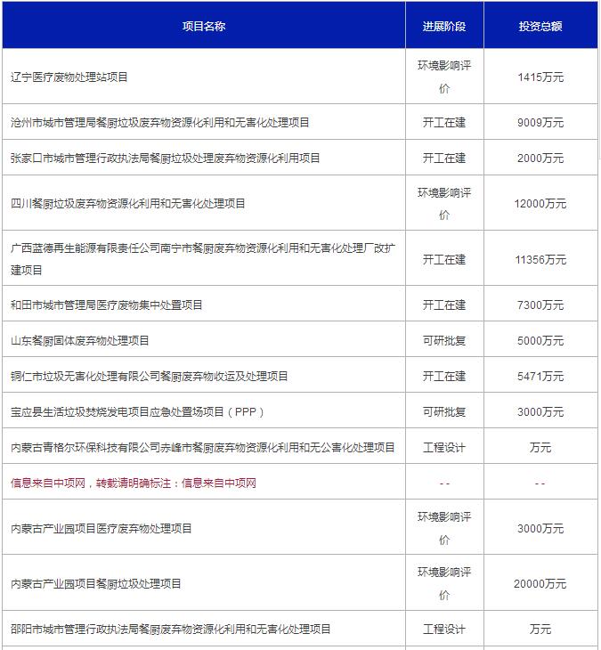二、中項(xiàng)網(wǎng)權(quán)威發(fā)布2017年4月份國(guó)內(nèi)擬在建廢棄物項(xiàng)目(以下為部分項(xiàng)目列表):