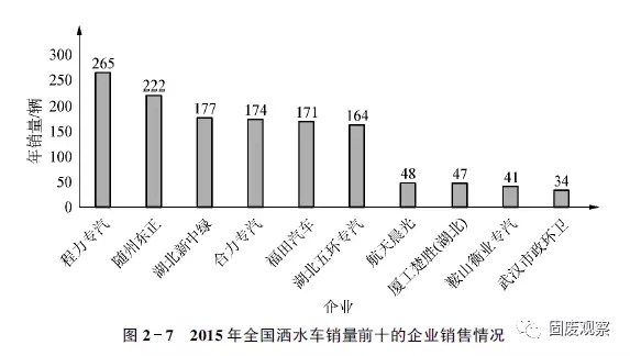 2015年全國垃圾車企業(yè)銷售情況