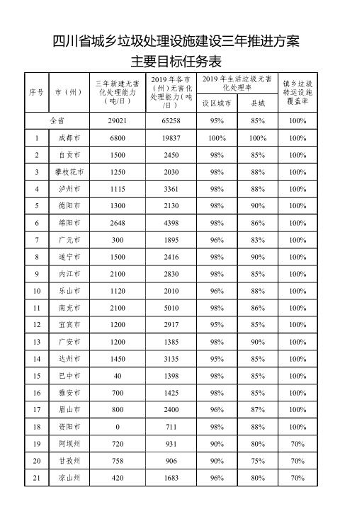 2.四川省城鄉(xiāng)垃圾處理設(shè)施建設(shè)三年推進方案主要建設(shè)任務(wù)表、目標(biāo)任務(wù)表、重點流域重點區(qū)域目標(biāo)分解表及實施項目計劃表