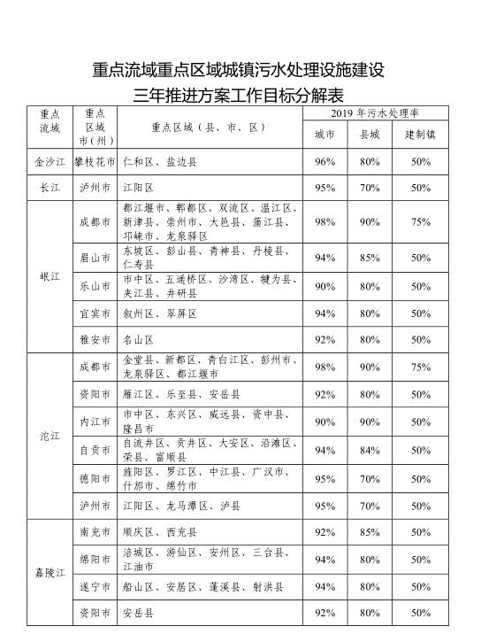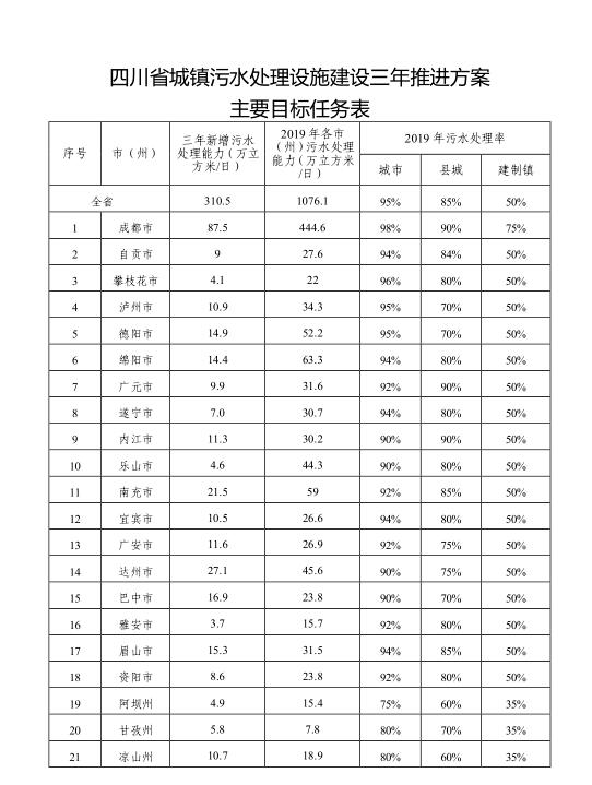 附件:1.四川省城鎮(zhèn)污水處理設(shè)施建設(shè)三年推進方案主要建設(shè)任務(wù)表、目標(biāo)任務(wù)表、重點流域重點區(qū)域目標(biāo)分解表及實施項目計劃表
