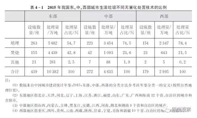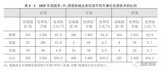 (2)東部地區(qū)填埋比例低于全國(guó)水平,中西部普遍高于全國(guó)水平