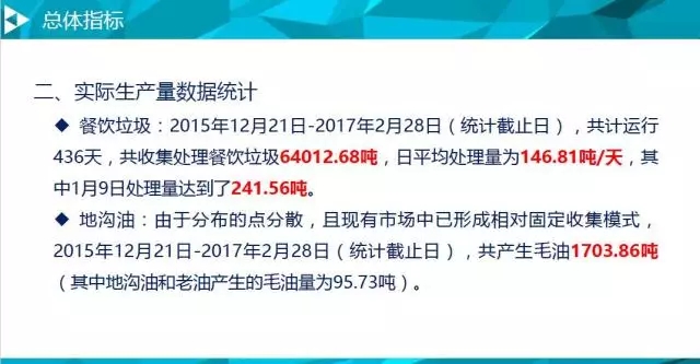 常州市餐廚廢棄物綜合處置一期工程于2014年11月8日正式建設(shè),包括收集、運(yùn)輸、處理和信息化監(jiān)管等內(nèi)容,是江蘇省第一個(gè)由省級(jí)行政主管部門審批的餐廚廢棄物處理工程。采用目前國(guó)內(nèi)比較先進(jìn)的技術(shù)路線,其中食物殘余采用“預(yù)處理+厭氧消化+沼氣發(fā)電”處理工藝,最終資源化產(chǎn)品主要為電能和生物柴油,工程于2015年12月21日投入試運(yùn)行,至2017年2月28日,共計(jì)運(yùn)行436天,共收集處理餐廚廢棄物64012.68噸,日平均處理量為146.81噸,其中,最多日處理量達(dá)241.56噸。為確保常州人“舌尖上的安全”,二期餐廚廢棄物處理系統(tǒng)將于2019年建成。