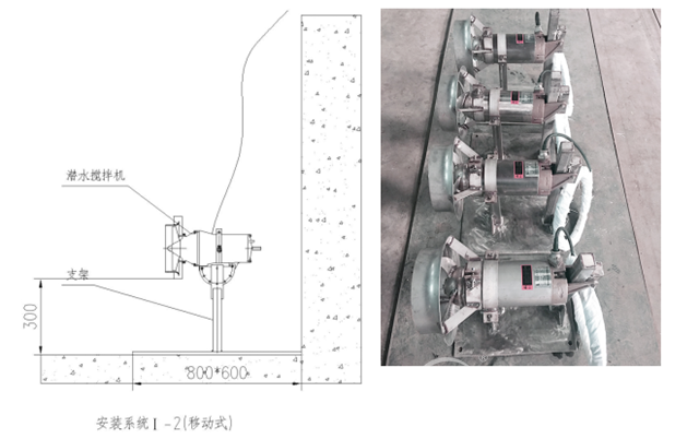 潛水?dāng)嚢铏C可采用多種安裝方式,下面提供了最為常用的幾種,我公司還可以提供其它特殊安裝方式,這些安裝無需排出池內(nèi)污水的情況下,能快速拆裝潛水?dāng)嚢铏C,并且安全可靠。