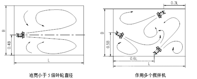 潛水?dāng)嚢铏C的選型是一項比較復(fù)雜的工作,選型的正確與否直接影響設(shè)備的正常使用,作為選型的原則就是要讓攪拌機在適合的容積里發(fā)揮充分的攪拌功能,一般可用流速來確定。根據(jù)污水處理廠不同的工藝要求,攪拌機最佳流速應(yīng)保證在0.15~0.3m/s之間,如果低于0.15m/s的流速則達不到推流攪拌效果,超過0.3m/s的流速則會影響工藝效果且造成浪費。所以在選型前首先確定潛水?dāng)嚢铏C運用的場所,如:污水池、污泥池、生化池;其次是介質(zhì)的參數(shù),如:懸浮物含量、粘度、溫度、PH值;還有水池的形狀、水深等。