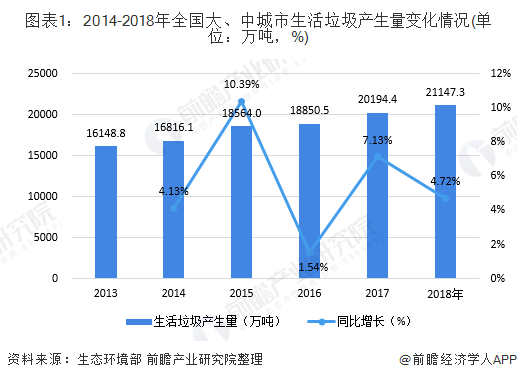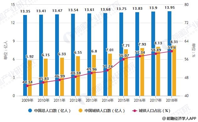 伴隨我國城鎮(zhèn)化水平提高,城鎮(zhèn)人口10年內(nèi)增速達40.43%,2000年,我國總?cè)丝跀?shù)為12.67億人,其中城鎮(zhèn)人口為4.59億人,截至2018年末,我國總?cè)丝?3.95億,城鎮(zhèn)人口8.31億人,其中城鎮(zhèn)人口占比為59.60%,這給城鎮(zhèn)生活環(huán)境帶來了極大壓力,尤其是城鎮(zhèn)生活垃圾的處理。 2009-20...