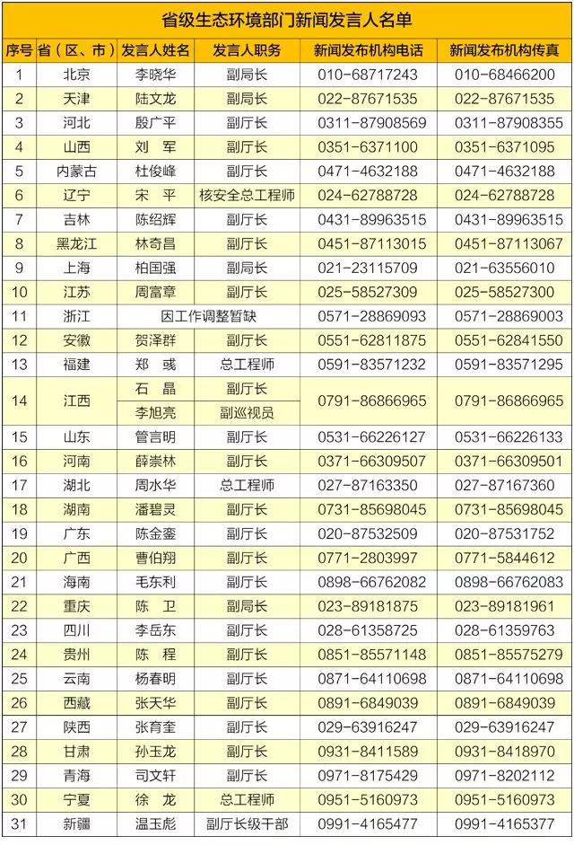 2019年1月21日,生態(tài)環(huán)境部更新發(fā)布31個(gè)省級(jí)生態(tài)環(huán)境部門新聞發(fā)言人名單,這是生態(tài)環(huán)境部第二次發(fā)布省級(jí)生態(tài)環(huán)境部門新聞發(fā)言人名單。生態(tài)環(huán)境部有關(guān)負(fù)責(zé)人表示,推進(jìn)例行新聞發(fā)布工作,保障公眾知情權(quán)是生態(tài)環(huán)境部堅(jiān)定不移、常抓不懈的一項(xiàng)重要工作。2017年,生態(tài)環(huán)境部印發(fā)《關(guān)于進(jìn)一步加強(qiáng)環(huán)境信息發(fā)布工作...