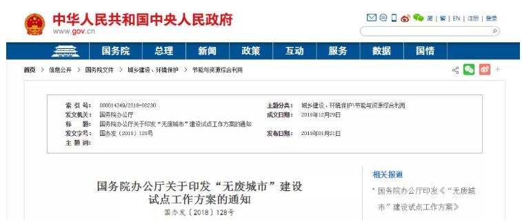 國(guó)務(wù)院辦公廳于近日印發(fā)“無廢城市”建設(shè)試點(diǎn)工作方案,方案提出,到2020年,系統(tǒng)構(gòu)建“無廢城市”建設(shè)指標(biāo)體系,探索建立“無廢城市”建設(shè)綜合管理制度和技術(shù)體系,試點(diǎn)城市在固體廢物重點(diǎn)領(lǐng)域和關(guān)鍵環(huán)節(jié)取得明顯進(jìn)展,大宗工業(yè)固體廢物貯存處置總量趨零增長(zhǎng)、主要農(nóng)業(yè)廢棄物全量利用、生活垃圾減量化資源化水平全面提...