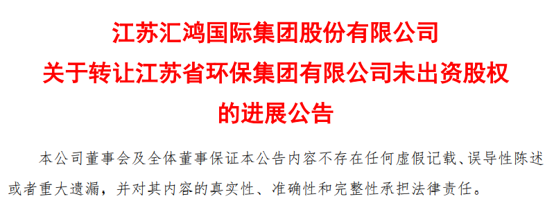 近日,匯鴻集團(tuán)發(fā)布公告稱,同意匯鴻集團(tuán)以非公開協(xié)議方式轉(zhuǎn)讓持有的江蘇省環(huán)保集團(tuán)有限公司(以下簡稱“省環(huán)保集團(tuán)”)30.62%的公司股權(quán),即對(duì)應(yīng)的公司未繳納的15.6億元注冊(cè)資本出資額。其中,5億元出資份額對(duì)應(yīng)的9.81%股權(quán)轉(zhuǎn)讓給江蘇省國金資本運(yùn)營集團(tuán)有限公司(以下簡稱 “國金集團(tuán)”或“受讓方”);...