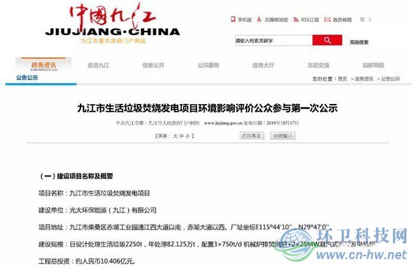 2018年10月17日,九江市政府網(wǎng)發(fā)布。在此之前,柴桑區(qū)政府網(wǎng)站分別于2017年11月22日()和2018年7月31日()發(fā)布兩次《九江市生活垃圾發(fā)電項(xiàng)目環(huán)境影響評(píng)價(jià)公眾參與第一次公示》。此第三次公示更改建設(shè)地址E115º42.48'、N29º45.06'到新位置E115&or...