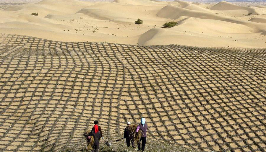 2007年10月19日 寧夏靈武市白芨灘國家級自然保護區(qū)職工扎草方格固沙。為了阻擋沙漠前進的腳步,毛烏素沙漠西南邊緣成立了靈武市白芨灘防沙林場。經(jīng)過三代治沙人不懈地努力,植被覆蓋率已由最初的20%提高到如今的逾40%。2014年7月14日 寧夏彭陽縣效果良好。據(jù)了解,寧夏中部干旱帶及南部山區(qū)開展生態(tài)...