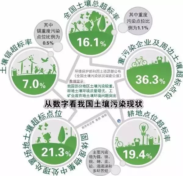 我國情況嚴(yán)重,土壤總超標(biāo)率為16.1%。根據(jù)統(tǒng)計局2014年中國土壤污染情況調(diào)查(調(diào)查的范圍是除香港、澳門特別行政區(qū)和臺灣省以外的陸地國土,調(diào)查點(diǎn)位覆蓋全部耕地,部分林地、草地、未利用地和建設(shè)用地,實際調(diào)查面積約630萬平方公里。)數(shù)據(jù)顯示:全國土壤環(huán)境狀況總體不容樂觀,部分地區(qū)土壤污染較重,耕地土...