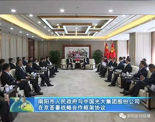 3月15號(hào),南陽(yáng)市人民政府與中國(guó)光大集團(tuán)股份公司在京簽署戰(zhàn)略合作框架協(xié)議。雙方約定,本著友好合作、互利共贏的原則,充分利用各自資源優(yōu)勢(shì),傾力創(chuàng)造有利條件,持續(xù)鞏固擴(kuò)大環(huán)保、金融兩個(gè)重點(diǎn)領(lǐng)域,深入挖掘文旅、康養(yǎng)兩個(gè)重要潛力點(diǎn),積極探索農(nóng)村遠(yuǎn)程醫(yī)療、美麗鄉(xiāng)村建設(shè)兩個(gè)關(guān)鍵創(chuàng)新點(diǎn),不斷推進(jìn)全方位、多領(lǐng)域深層...