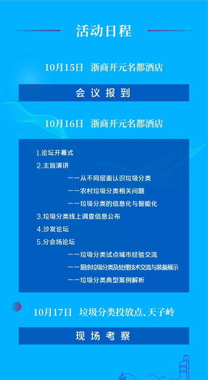 文章導(dǎo)讀中國城市環(huán)境衛(wèi)生協(xié)會(huì)垃圾分類專業(yè)委員會(huì)舉辦的“2020 垃圾分類杭州高峰論壇”,將于2020 年 10 月 15 日—17 日在杭州舉行。會(huì)議以“找差距、補(bǔ)短板,強(qiáng)化垃圾分類全過程管理”為主題,將薈萃全國環(huán)衛(wèi)領(lǐng)域精英,包括中國城市環(huán)境衛(wèi)生協(xié)會(huì)會(huì)長(zhǎng)徐文龍、中國城市環(huán)境衛(wèi)生協(xié)會(huì)秘書長(zhǎng)劉晶昊、中國...