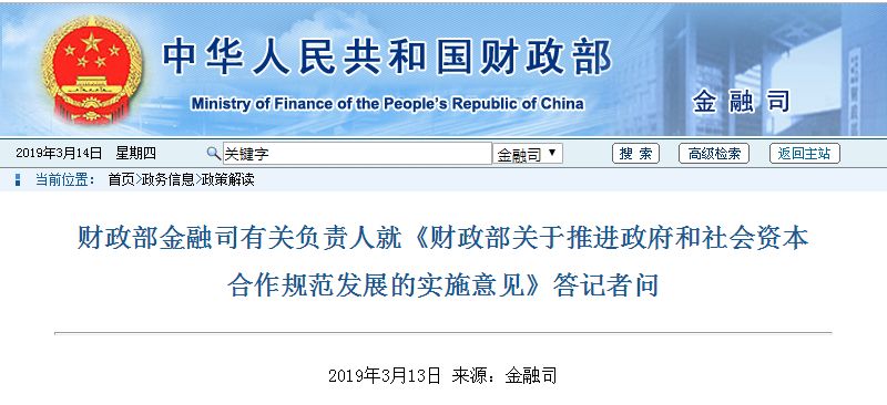 文章導(dǎo)讀近日,財(cái)政部印發(fā)《關(guān)于推進(jìn)政府和社會資本合作規(guī)范發(fā)展的實(shí)施意見》(以下簡稱《實(shí)施意見》)。財(cái)政部金融司有關(guān)負(fù)責(zé)人就《實(shí)施意見》有關(guān)情況回答了記者的提問。來源:財(cái)政部問:請介紹一下出臺《實(shí)施意見》的背景和主要目的?答:推廣政府和社會資本合作(PPP)模式,引導(dǎo)社會資本參與公共服務(wù)供給,是黨中央...