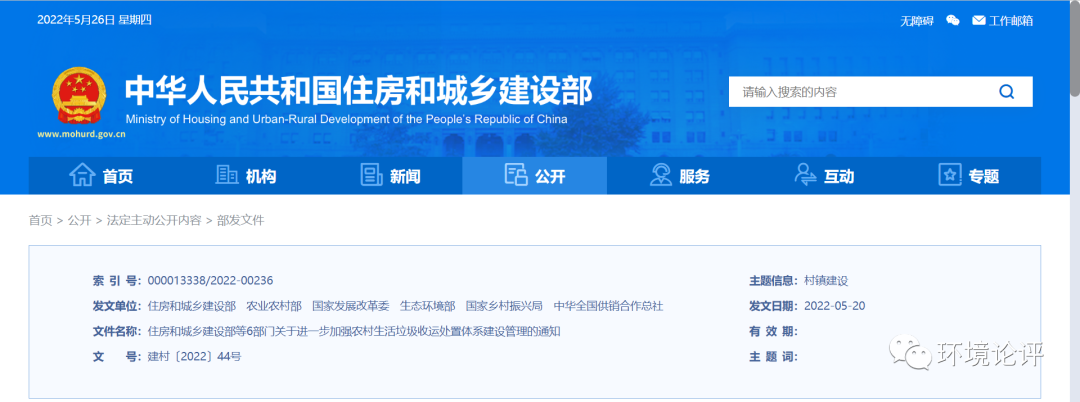 為深入貫徹黨中央、國務(wù)院關(guān)于實(shí)施鄉(xiāng)村建設(shè)行動(dòng)的決策部署,落實(shí)《農(nóng)村人居環(huán)境整治提升五年行動(dòng)方案(2021—2025年)》明確的目標(biāo)任務(wù),統(tǒng)籌縣鄉(xiāng)村三級(jí)生活垃圾收運(yùn)處置設(shè)施建設(shè)和服務(wù),進(jìn)一步擴(kuò)大農(nóng)村生活垃圾收運(yùn)處置體系覆蓋范圍,提升無害化處理水平,健全長效管護(hù)機(jī)制,近日,住房和城鄉(xiāng)建設(shè)部等6部門印發(fā)《...