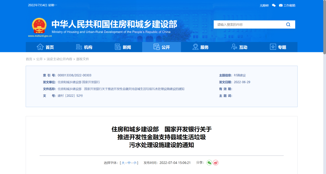 縣域生活垃圾污水處理設施建設“錢”的問題,終于有了解決方案。 7月4日,住房和城鄉(xiāng)建設部、國家開發(fā)銀行聯(lián)合發(fā)布《關于推進開發(fā)性金融支持縣域生活垃圾污水處理設施建設的通知》(下稱《通知》),對縣域生活垃圾污水處理設施建設給出金融支持。 具體來講,未來如果是納入項目儲備庫的項目,...