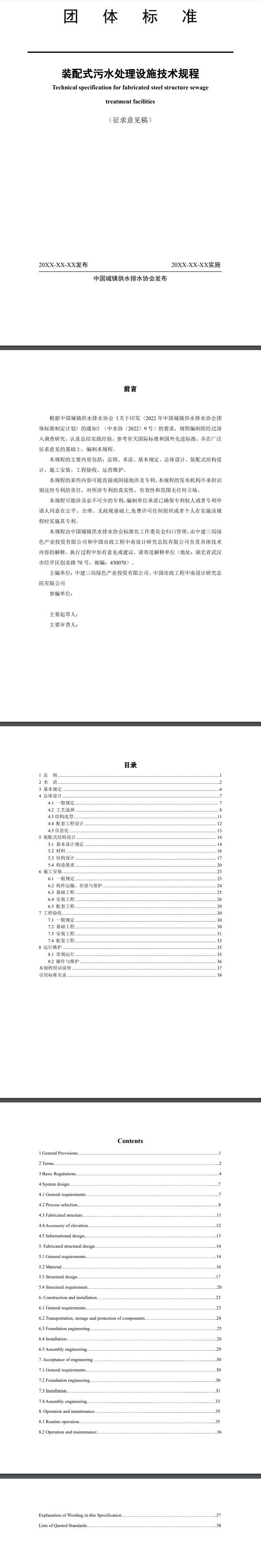 中國城鎮(zhèn)供水排水協(xié)會關于征求團體標準 《裝配式污水處理設施技術(shù)規(guī)程(征求意見稿)》 意見的通知各有關單位和專家: 根據(jù)《關于印發(fā)<2022年中國城鎮(zhèn)供水排水協(xié)會團體標準制訂計劃>的通知》(中水協(xié)〔2022〕9號),我協(xié)會組織中建三局綠色產(chǎn)業(yè)投資有限公司、中國市政工程中南設計研究總院有限公...