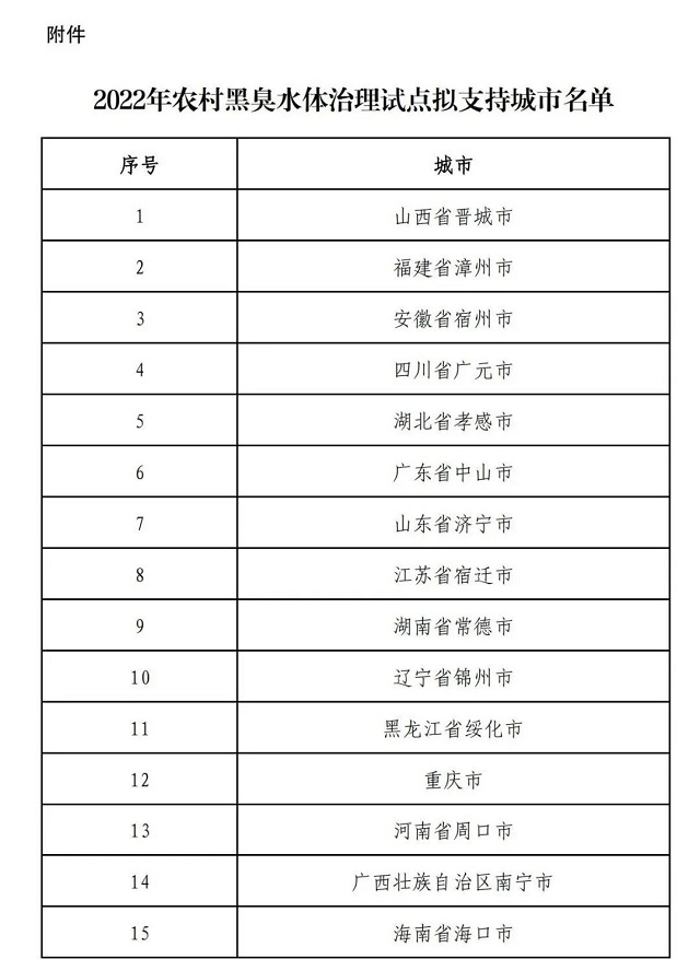 按照《財政部辦公廳 生態(tài)環(huán)境部辦公廳關于開展2022年農(nóng)村黑臭水體治理試點工作的通知》(財辦資環(huán)〔2022〕5號)要求,財政部會同生態(tài)環(huán)境部組織專家對各地農(nóng)村黑臭水體治理申報城市實施方案進行了競爭性評審。根據(jù)競爭性評審結果,擬將15個城市確定為2022年支持的農(nóng)村黑臭水體治理試點城市(詳見附件)。 ...