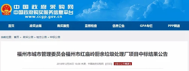 日前,從中國政府采購網獲悉,福建首個廚余垃圾處理PPP項目--福州市紅廟嶺廚余垃圾處理廠項目(以下簡稱福州項目)中標結果出爐,首創(chuàng)環(huán)境控股有限公司聯(lián)合體以261元/噸中標價成功將項目攬入懷中。 福州項目是福州市垃圾分類的終端處理設施——紅廟嶺循環(huán)經濟生態(tài)產業(yè)園區(qū)的重要組成部分...