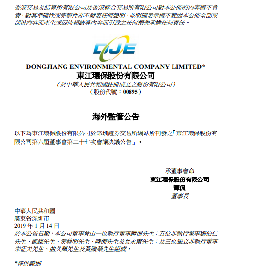 隨著深圳市東深水源保護(hù)辦公室原主任(正處級(jí))黎曉濤案浮出水面,東江環(huán)保也牽涉其中。新京報(bào)記者獲悉,黎曉濤被指收受東江環(huán)保陳某生(2008年至2014年在東江環(huán)保任副總經(jīng)理、總經(jīng)理)賄賂人民幣26萬(wàn)元。1月7日,東江環(huán)保相關(guān)人士告訴新京報(bào)記者,此事并不牽涉現(xiàn)任高管。在此之前的2018年8月,東江環(huán)保公...